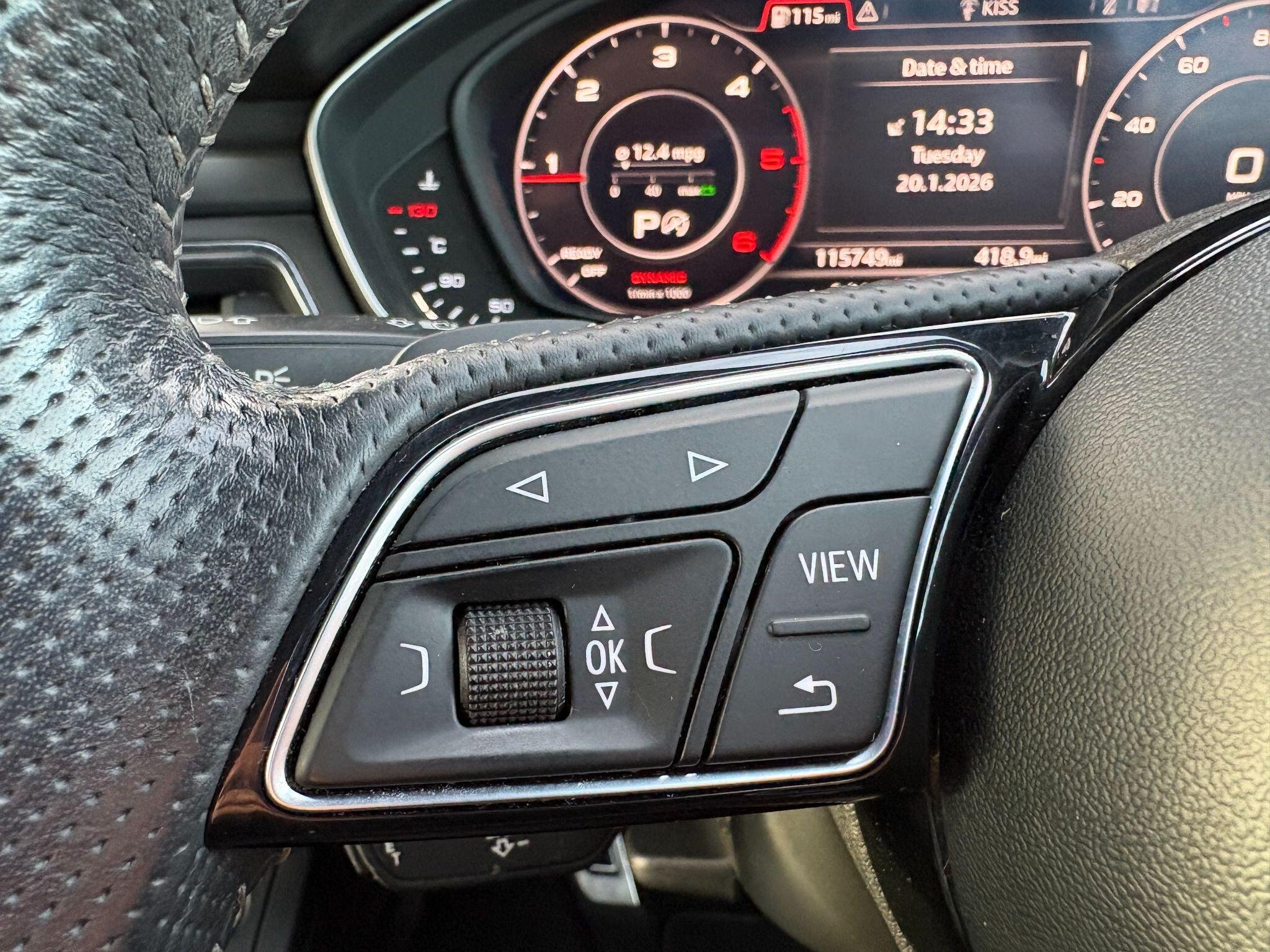 - High Multi-Function 3-Spoke Leather Steering Wheel with Grips in Perforated Leather and S Badging with Gear-Shift Paddles