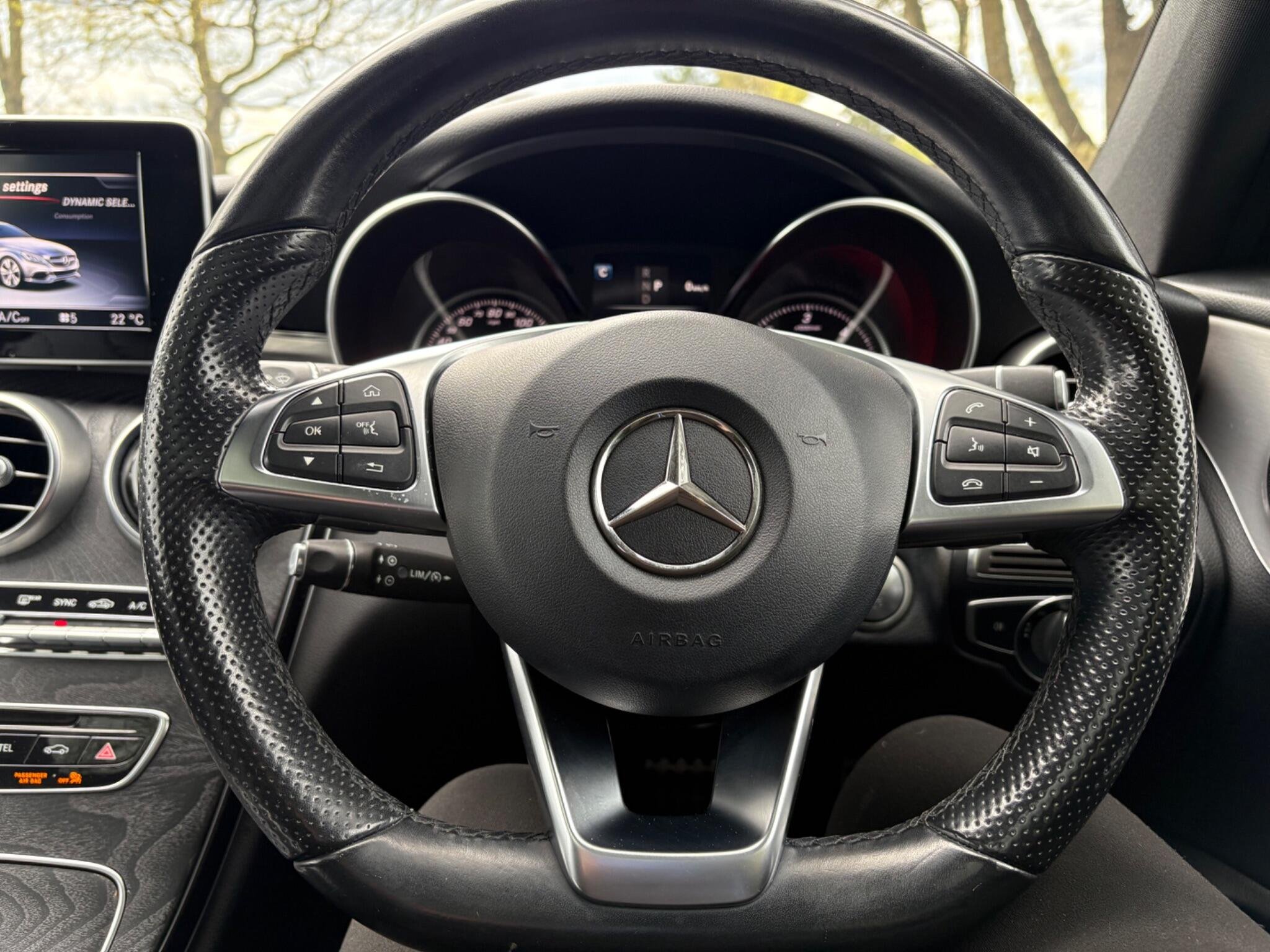 - Steering Wheel - 3-Spoke AMG in Leather with Flattened Lower Section and Perforated Grip Area